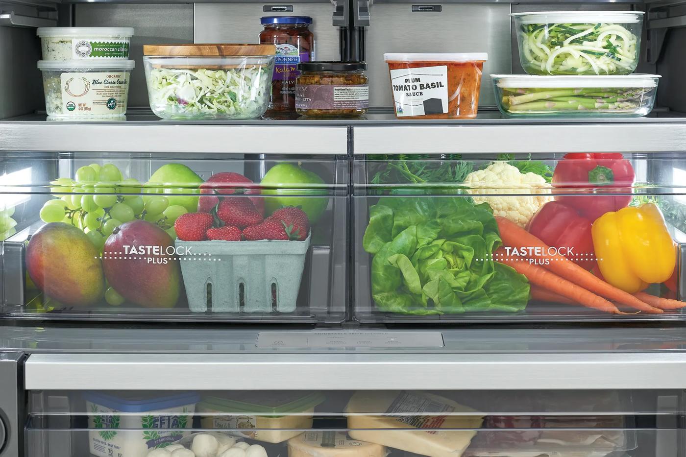 Keep produce tasting fresh like nature intended with smart crisper technology that removes excess moisture and blocks out dry air to prevent shriveling and shrinking, plus an ethylene absorber reduces the gas emitted by many fruits and vegetables that causes spoiling