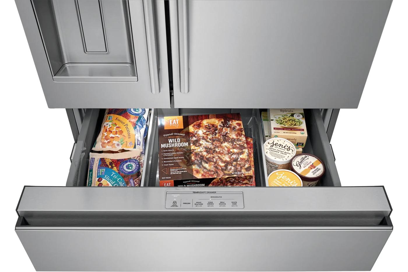 The Electrolux Four-Door French Door Refrigerator offers the TempAdapt™ Drawer which allows you to store all your favorites for entertaining - from cheese to wine to sorbet - at the perfect serving temperature. And it helps keep produce tasting fresh like nature intended with TasteLock™ Crispers.