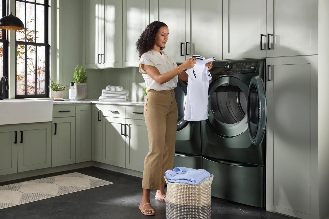 The Electrolux front load gas dryer with LuxCare Dry uses a moisture sensor to prevent over or under-drying. The Wear It Again cycle refreshes fabrics by using steam and tumble to remove pet hair, reduce odors, and reduce wrinkles in just 15 minutes. And the Luxury-Quiet Sound System is so quiet you can run it whenever you want without disrupting your household.