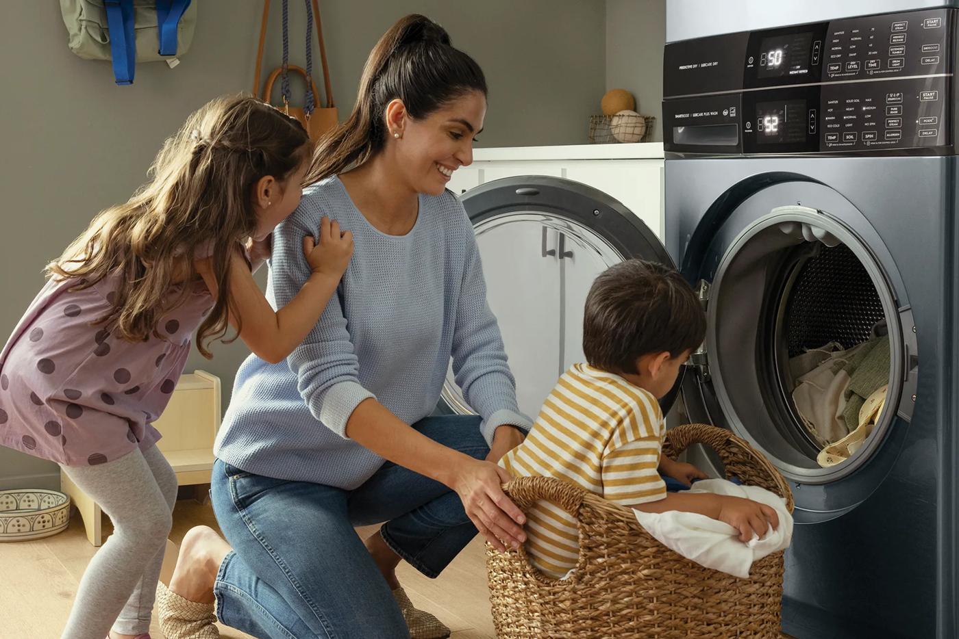 La tour de buanderie électrique Electrolux Laundry Tower à chargement frontal pleine grandeur et entièrement intégrée est dotée d’un design superposé qui prend la moitié de l’espace de plancher, libérant la salle de buanderie pour un rangement supplémentaire, le tout avec un panneau de commande facile d’accès. La laveuse offre l’élimination des taches la plus efficace avec la technologie de prémélange SmartBoost®* et la sécheuse avec LuxCare® Dry utilise un capteur d’humidité pour prévenir le séchage excessif ou insuffisant.