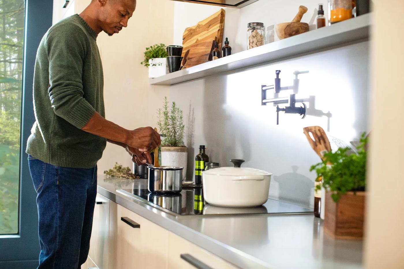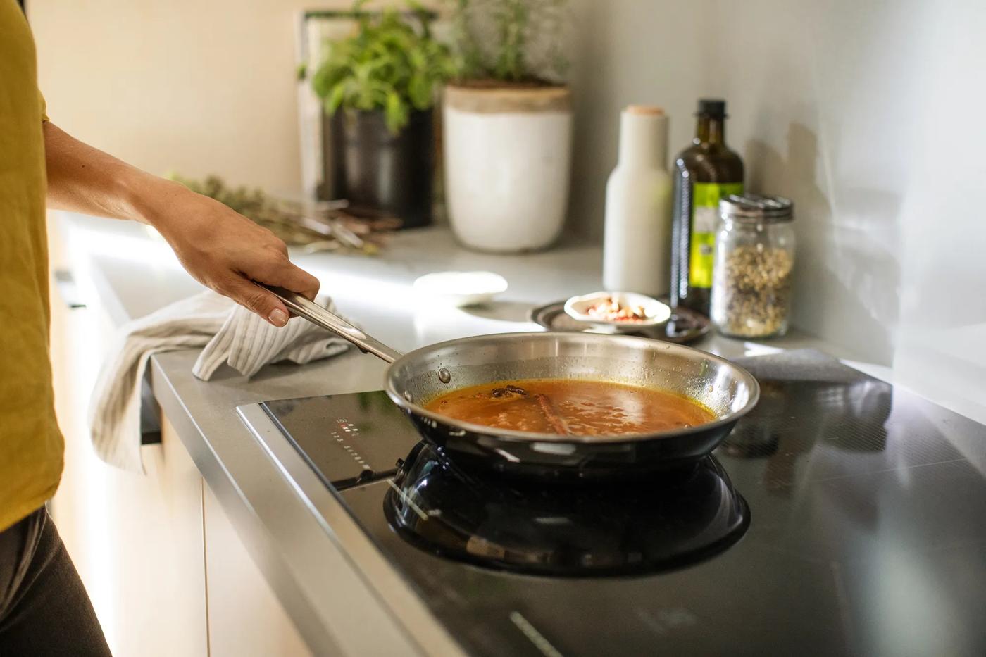 Contrairement aux tables de cuisson électriques et à gaz classiques, l’induction ne chauffe que la casserole et les aliments qu’elle contient. La zone autour de la casserole reste donc plus froide au toucher, ce qui vous permet de nettoyer les déversements et les éclaboussures pendant la cuisson.